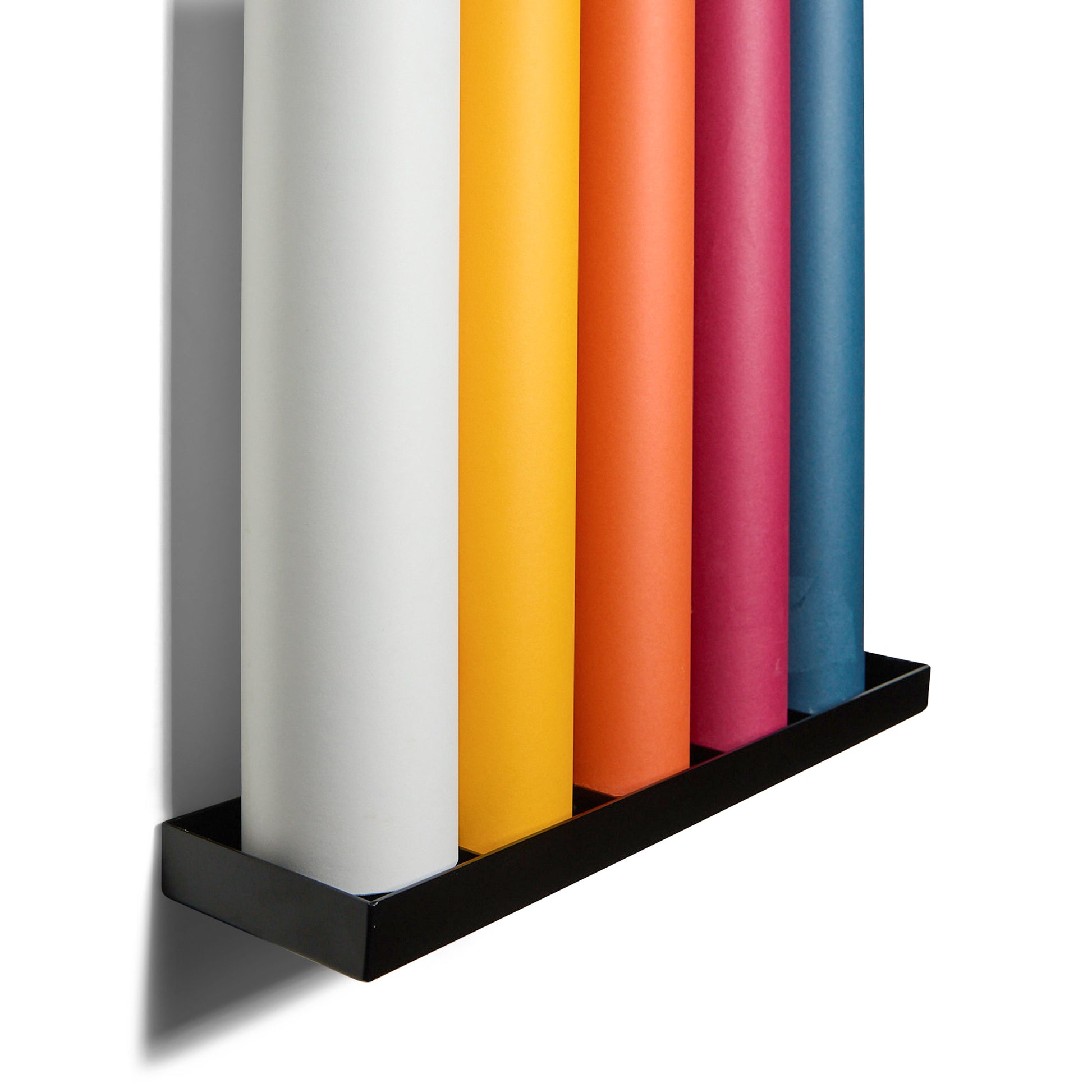 - Holds up to 5 paper backdrop rolls.